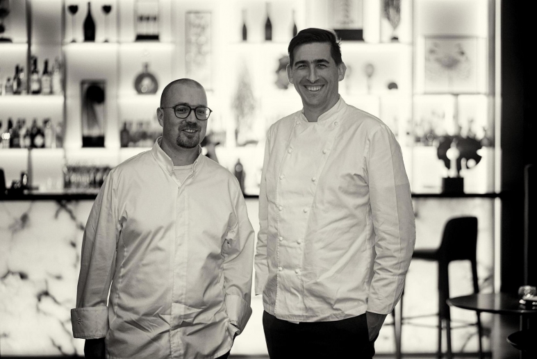 Le chef de l’Hôtel Valrose, à Rougemont, défendra les couleurs suisses au plus ancien concours gastronomique français. (Photo: Stéphane Décotterd, président du Taittinger suisse et Victor Moriez. ©Gildas Boclé)