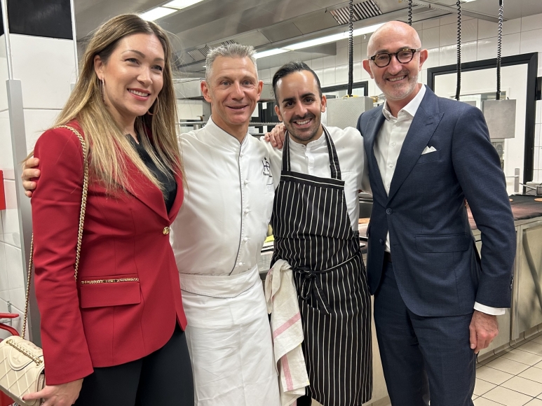 (sur la photo, entourés d'Isabelle von Burg, directrice du Lausanne Palace, et de François Dussard, patron de l'Evian Resort)