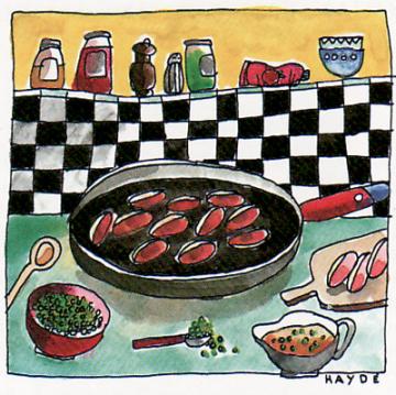Ne reste qu'à couper 1 kg de filet de porc en médaillons d'environ 1 cm d'épaisseur que vous poêlerez rapidement dans un peu d'huile avant de salez-poivrer. (Notez que vous pouvez faire tout cela à l'avance si votre temps est compté, comme toute personne qui fait double journée...)