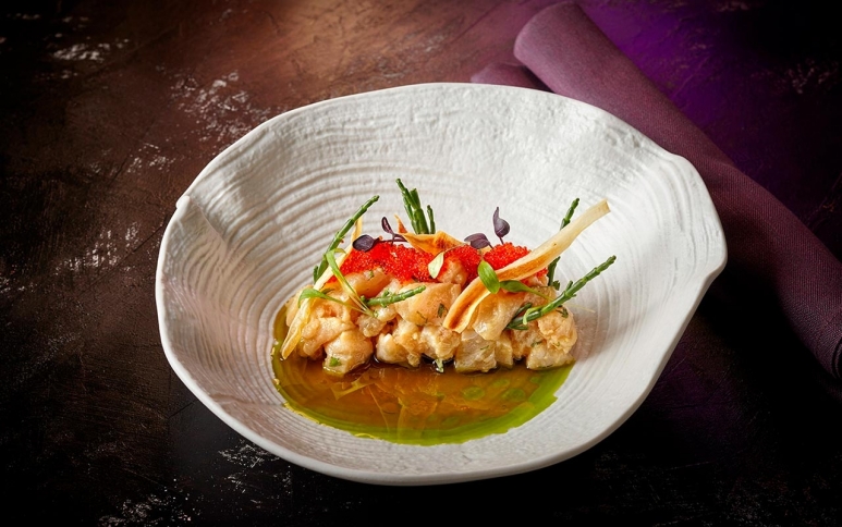 Le Montreux Palace réédite une expérience sympathique, en accueillant pour trois mois le restaurant Nikkei Nine de Hamburg, et sa cuisine nikkei, fusion entre le Japon et le Pérou. (photo, ceviche de bar rayé).