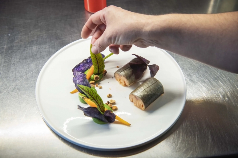 Antoine Gonnet, le nouveau chef du mythique restaurant des hauts de Montreux, propose une mousse moitié-moitié qui s’agrémente au gré des saisons.