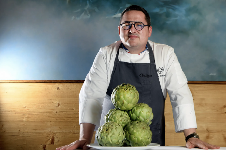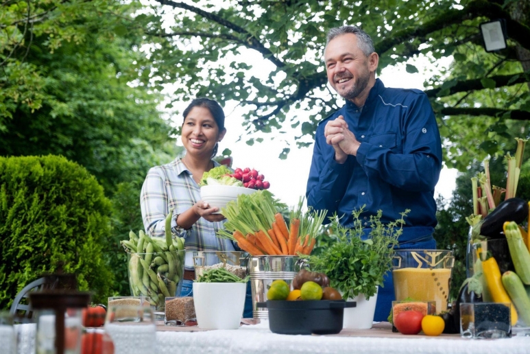 Visite dans ce bistrot carougeois aussi sympathique que bon, à l'occasion d'une recette faite avec les chefs Margaux et Guillaume Fribault, le couple en cuisine. (Autour d'eux, en blanc sur la photo, il y a Esteban, l'aide de cuisine en bleu, Camille, la serveuse, et Jan Bertiaux, le patron.)