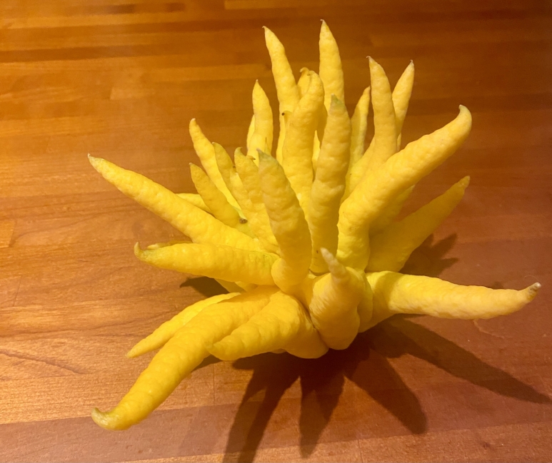 Je suis assez fier de cultiver un plant de main de Bouddha, qui me donne quelques fruits par année. J'ai utilisé cet agrume original pour faire une petite sauce pour mon loup de mer. C'était pas mal du tout. Vous voulez en savoir plus? Mais volontiers!